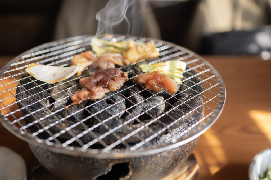 アツアツの炭火で、お肉を自分で焼いていただくスタイルです!